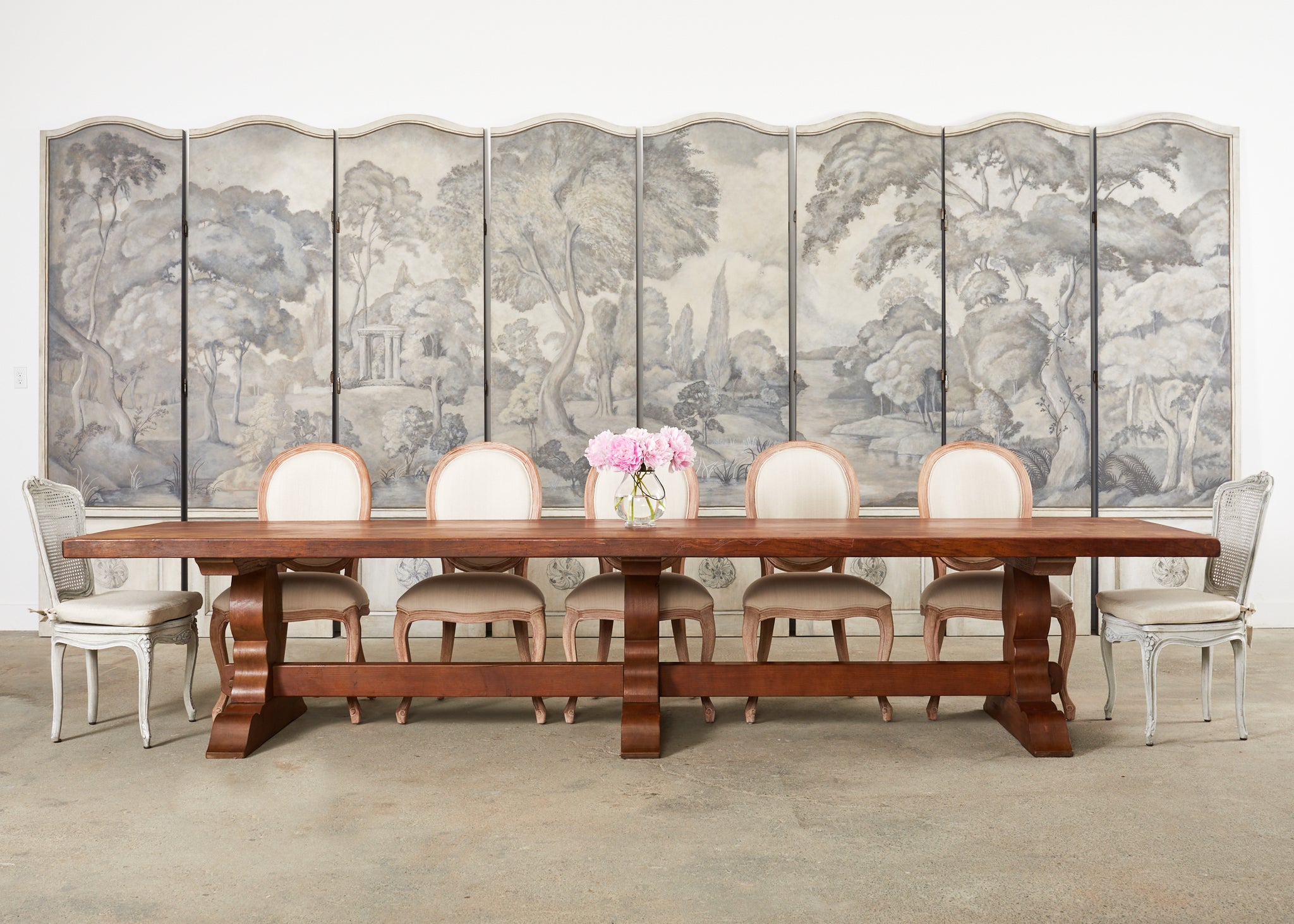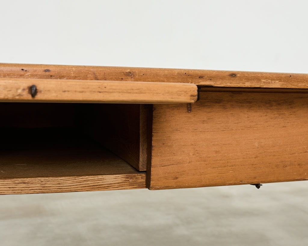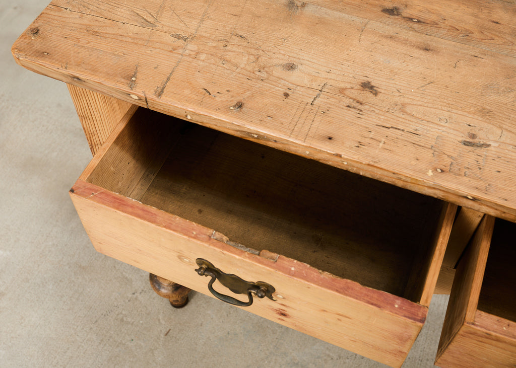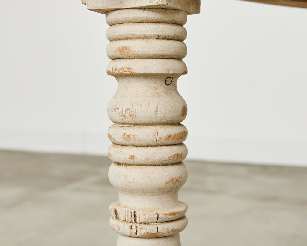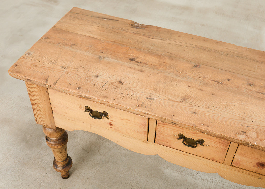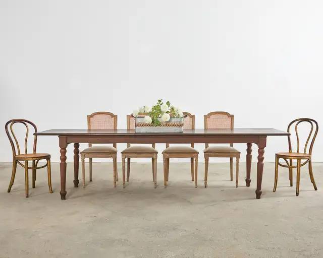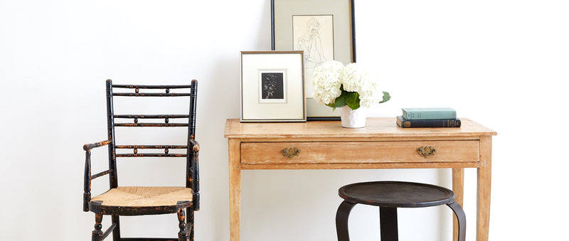 Vintage farm tables and antique work tables made for morning coffee, flour-dusted afternoons, and long dinners in and around the kitchen.