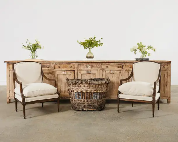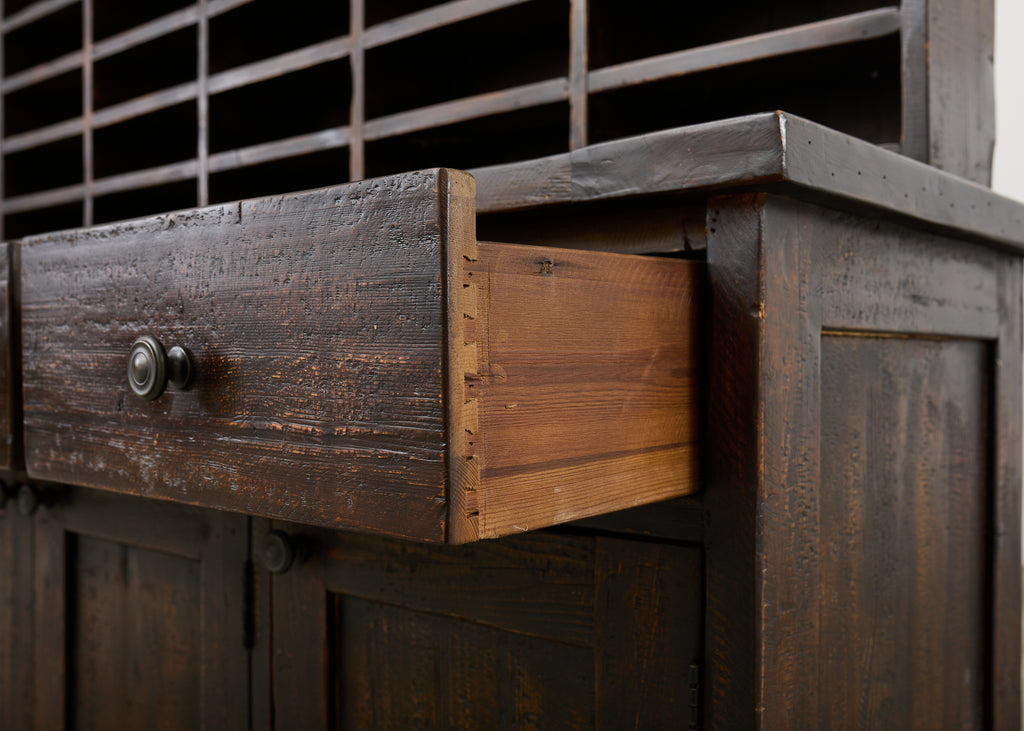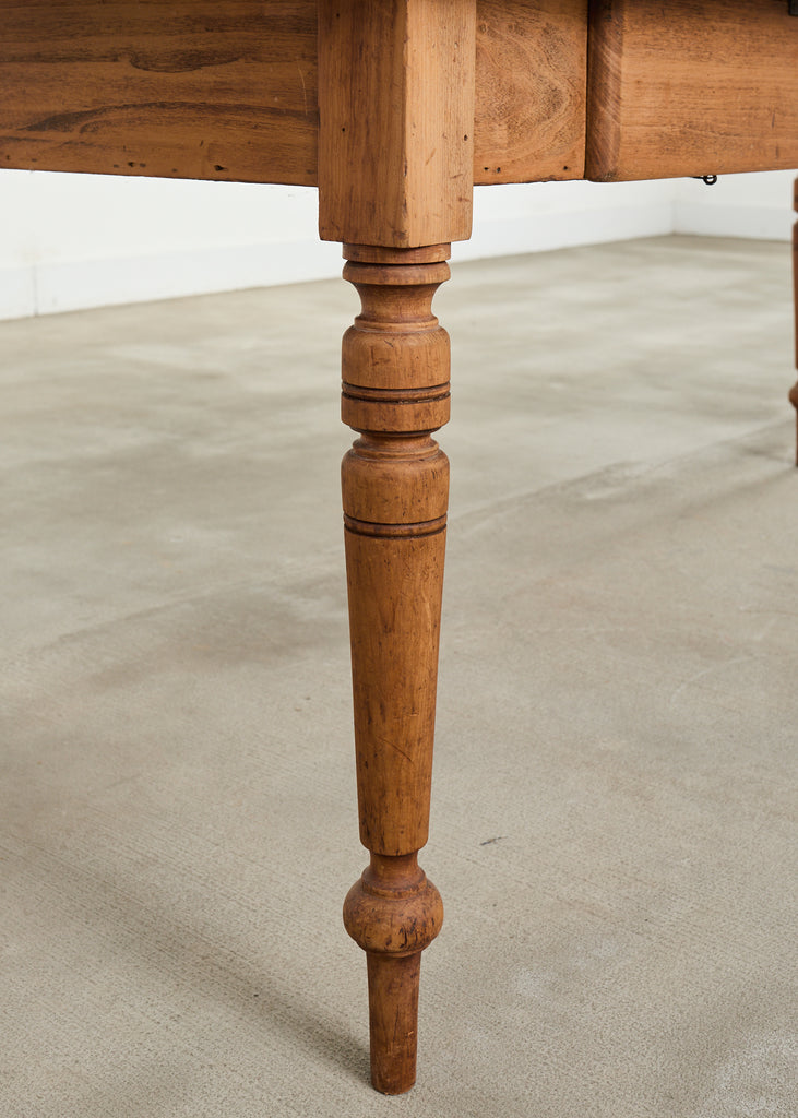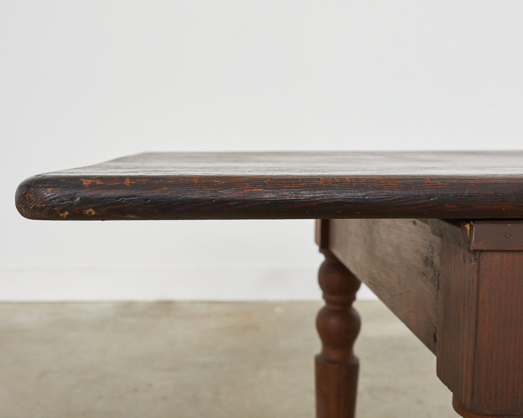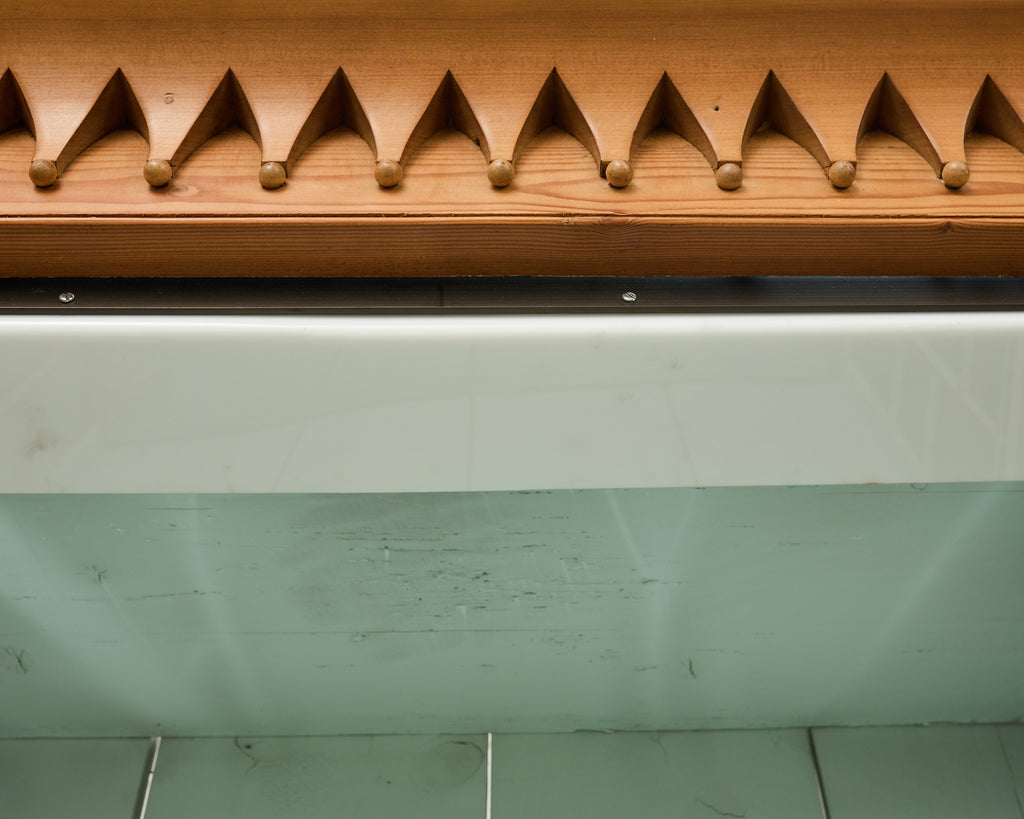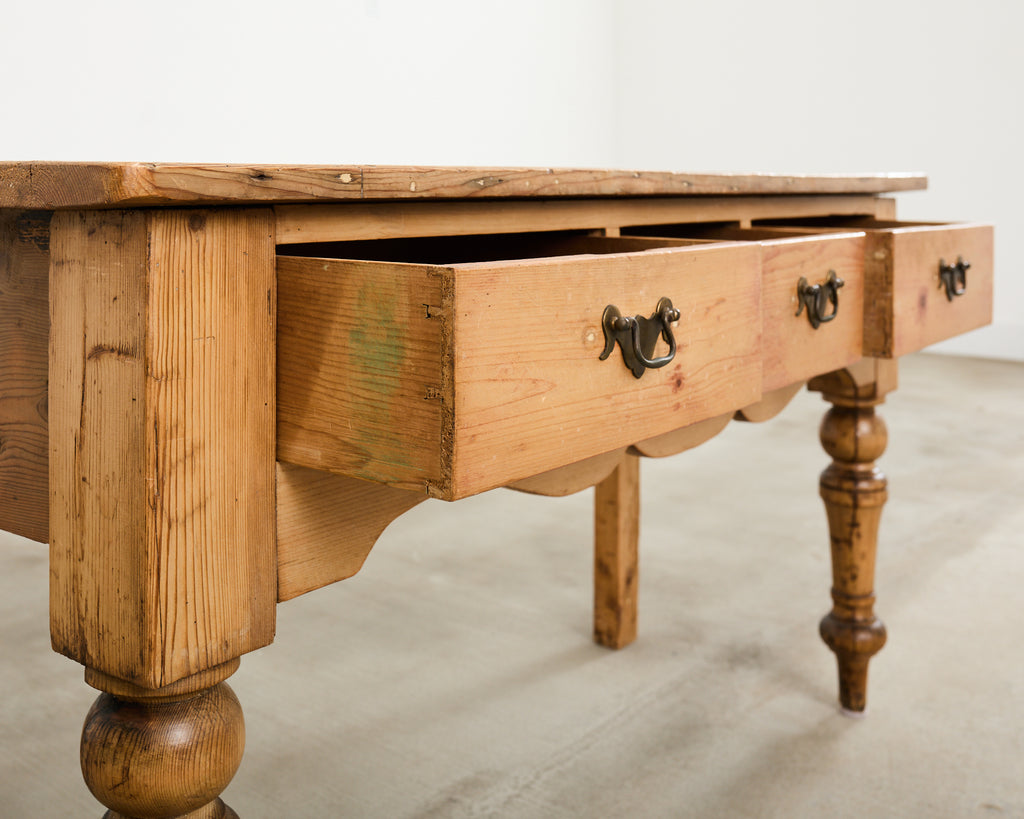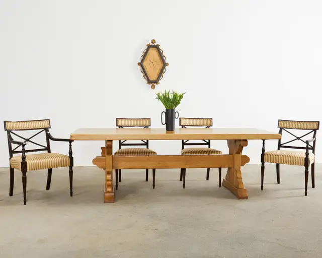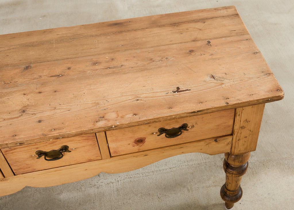 Vintage farm tables and antique work tables made for morning coffee, flour-dusted afternoons, and long dinners in and around the kitchen.