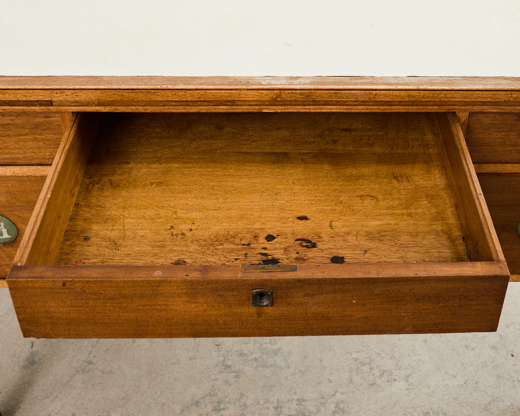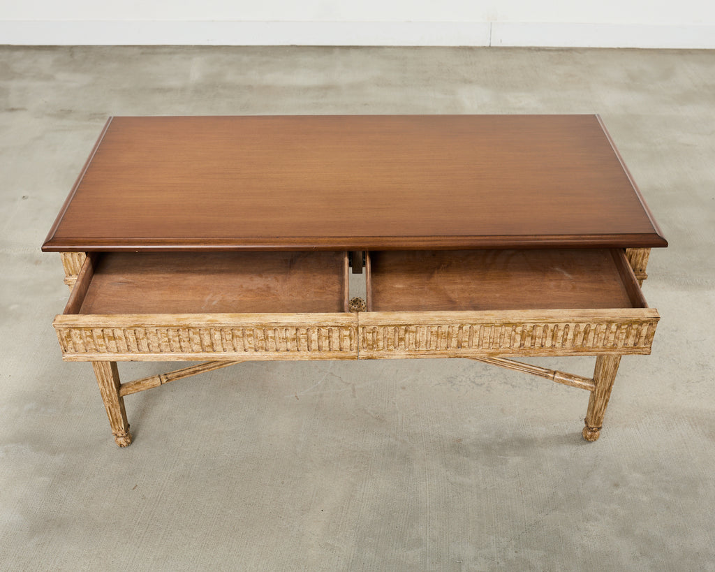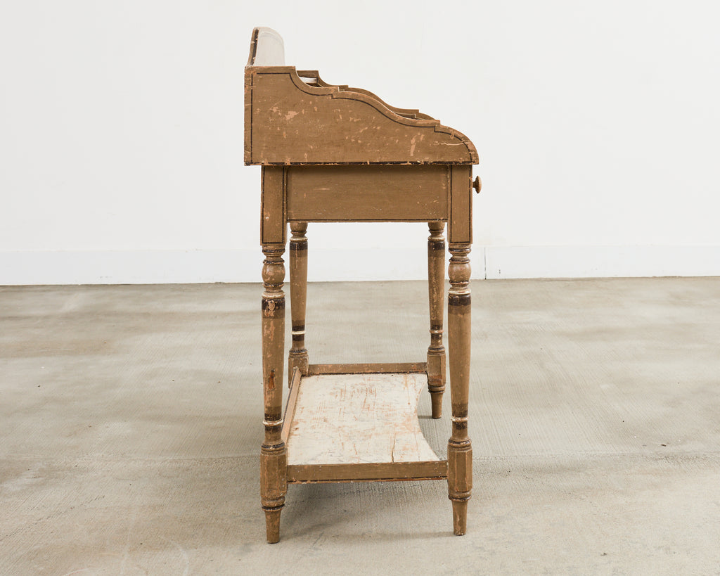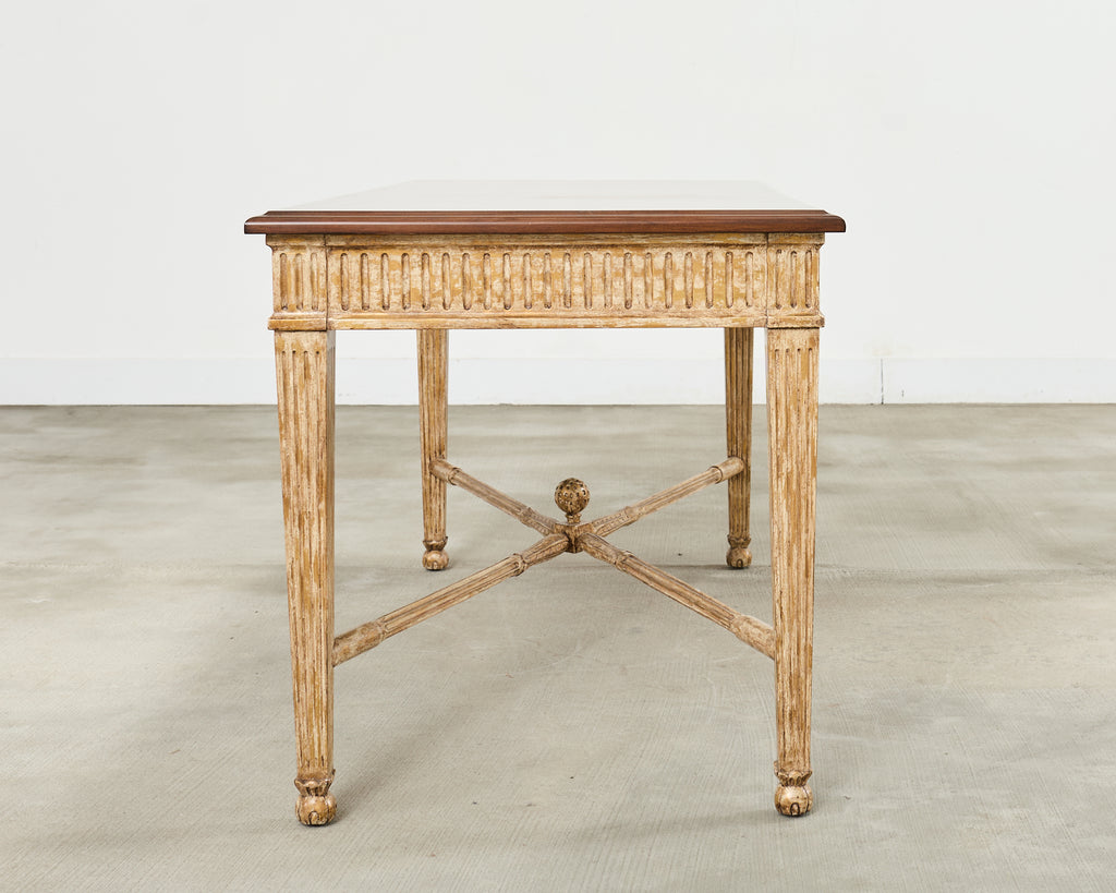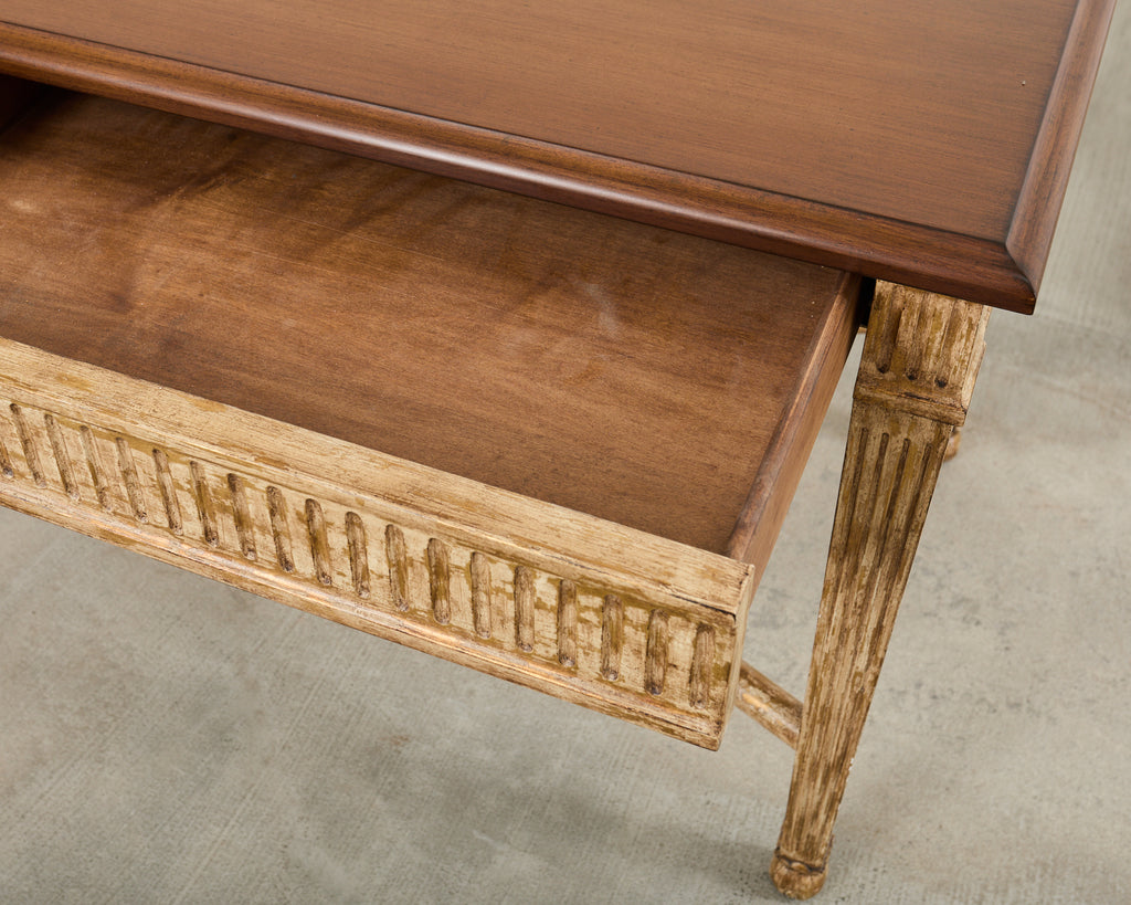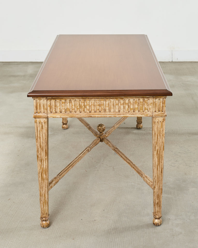 Vintage farm tables and antique work tables made for morning coffee, flour-dusted afternoons, and long dinners in and around the kitchen.