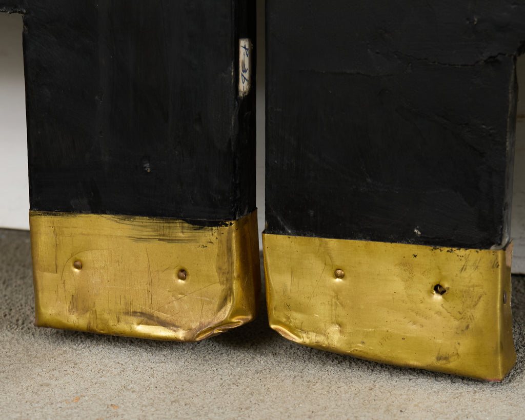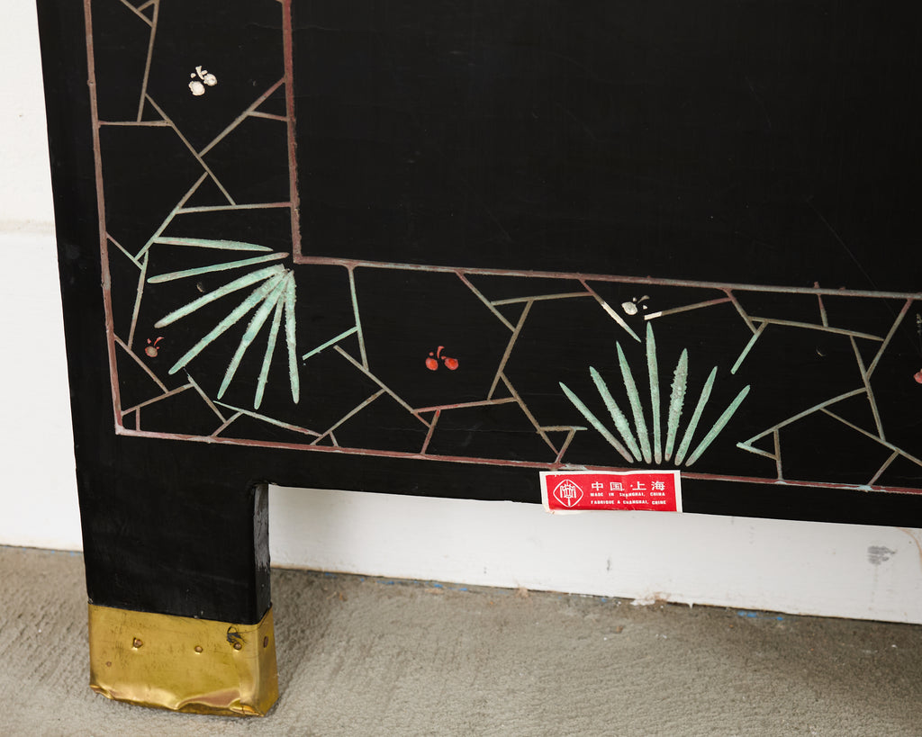 Condition: Good, wear consistent with age and use. Minor losses. Beautifully crafted with vibrant color and age appropriate wear as seen in photos. Minor chips, scuffs, scratches, losses and craquelure to lacquer finish as expected. Patinated brass with wear.