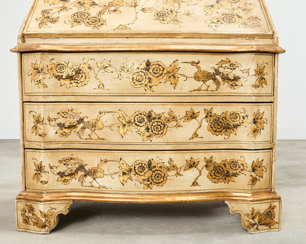 Venetian Style Chinoiserie Decorated Parcel Gilt Secretary