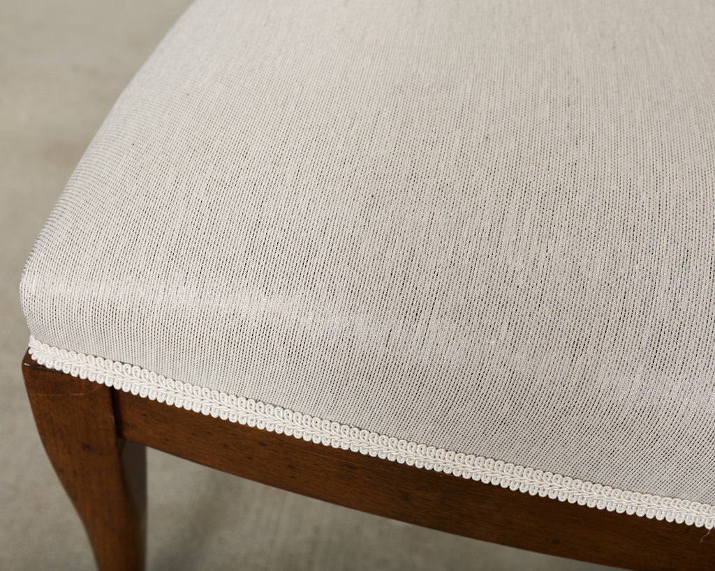 Condition: Good, wear consistent with age and use. Reupholstered. Beautifully crafted with solid joinery and construction. Newly upholstered seat cushions as seen in photos. Very good, well-preserved condition. Age appropriate wear with minor chips, scuffs, and light scratches as expected.