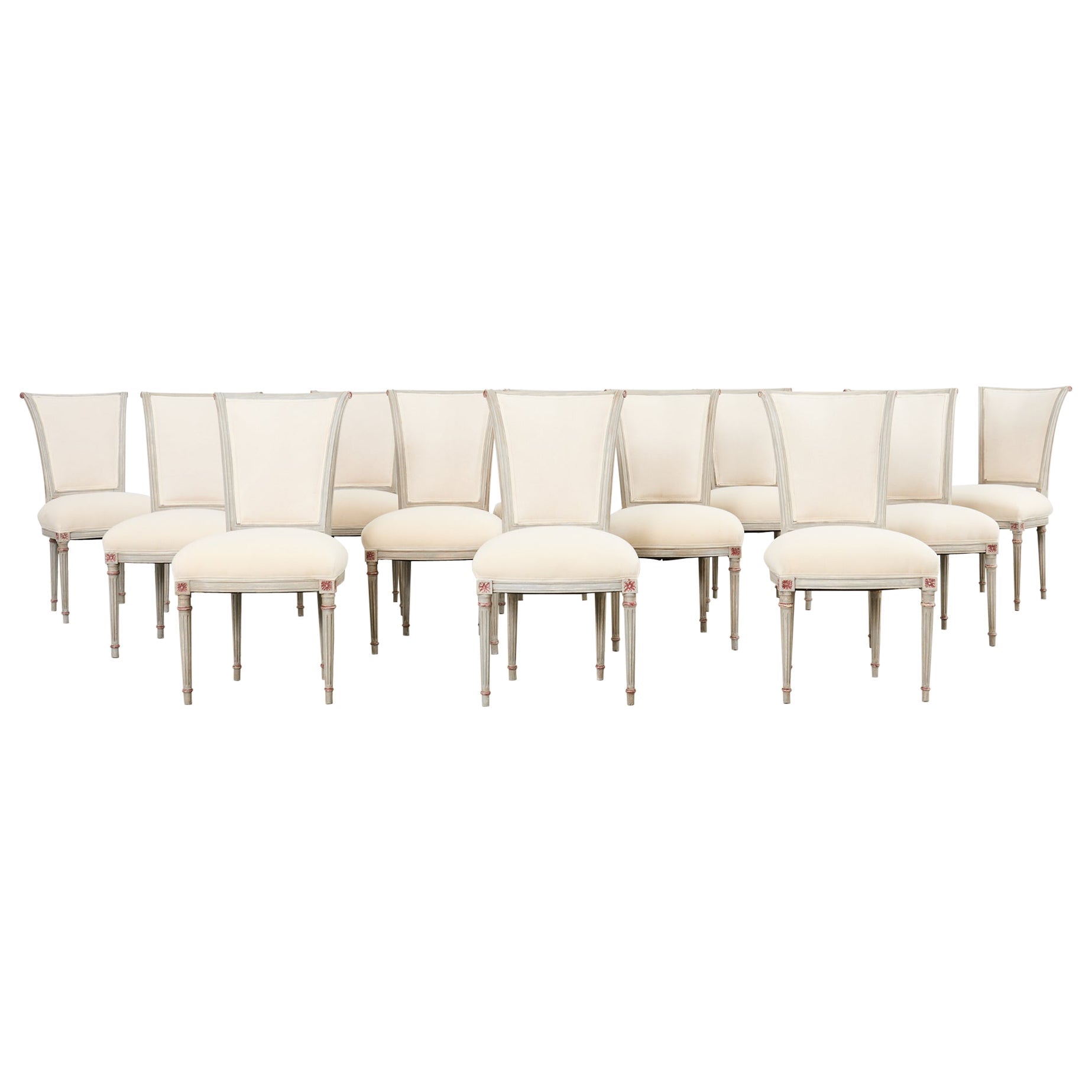 Set of Twelve Louis XVI Gustavian Style Painted Dining Chairs