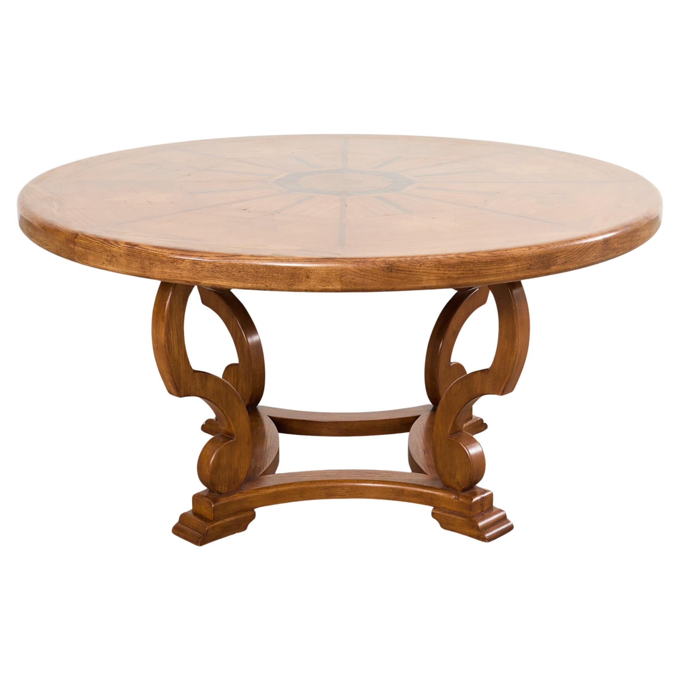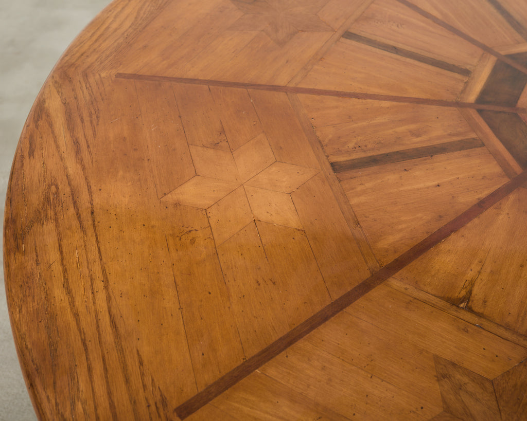 Country Italian Round Oak Dining Table with Parquetry Top