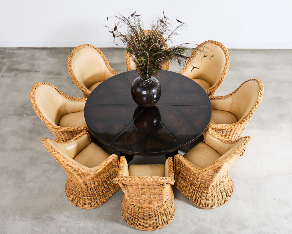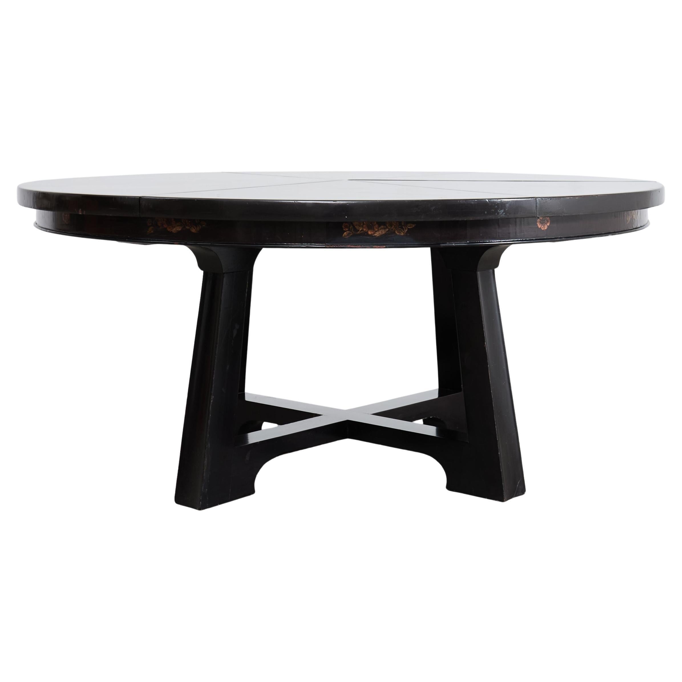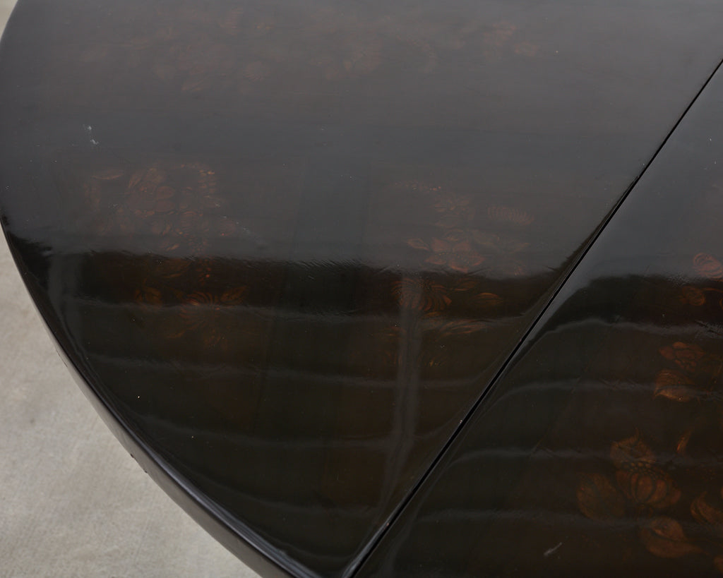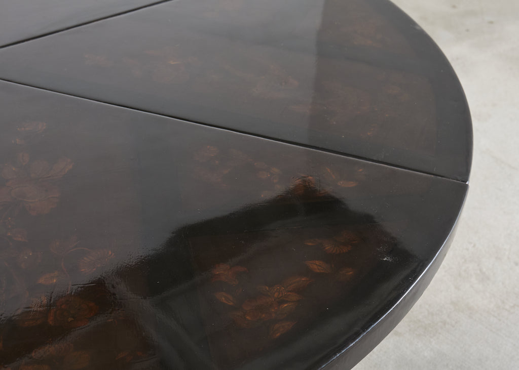 L. Rossi Expandable Round Chinoiserie Lacquered Dining Table 7 Ft