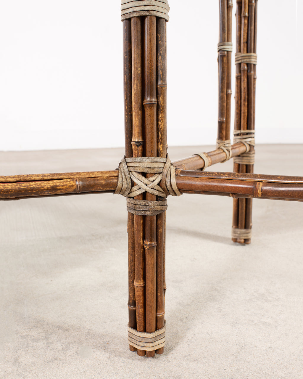 Condition: Good, wear consistent with age and use. Beautifully crafted with solid joinery and construction. Desirable aged patina to bamboo finish as seen in photos. Very good condition with age appropriate wear. Minor chips, scuffs, scratches, and fading as expected.