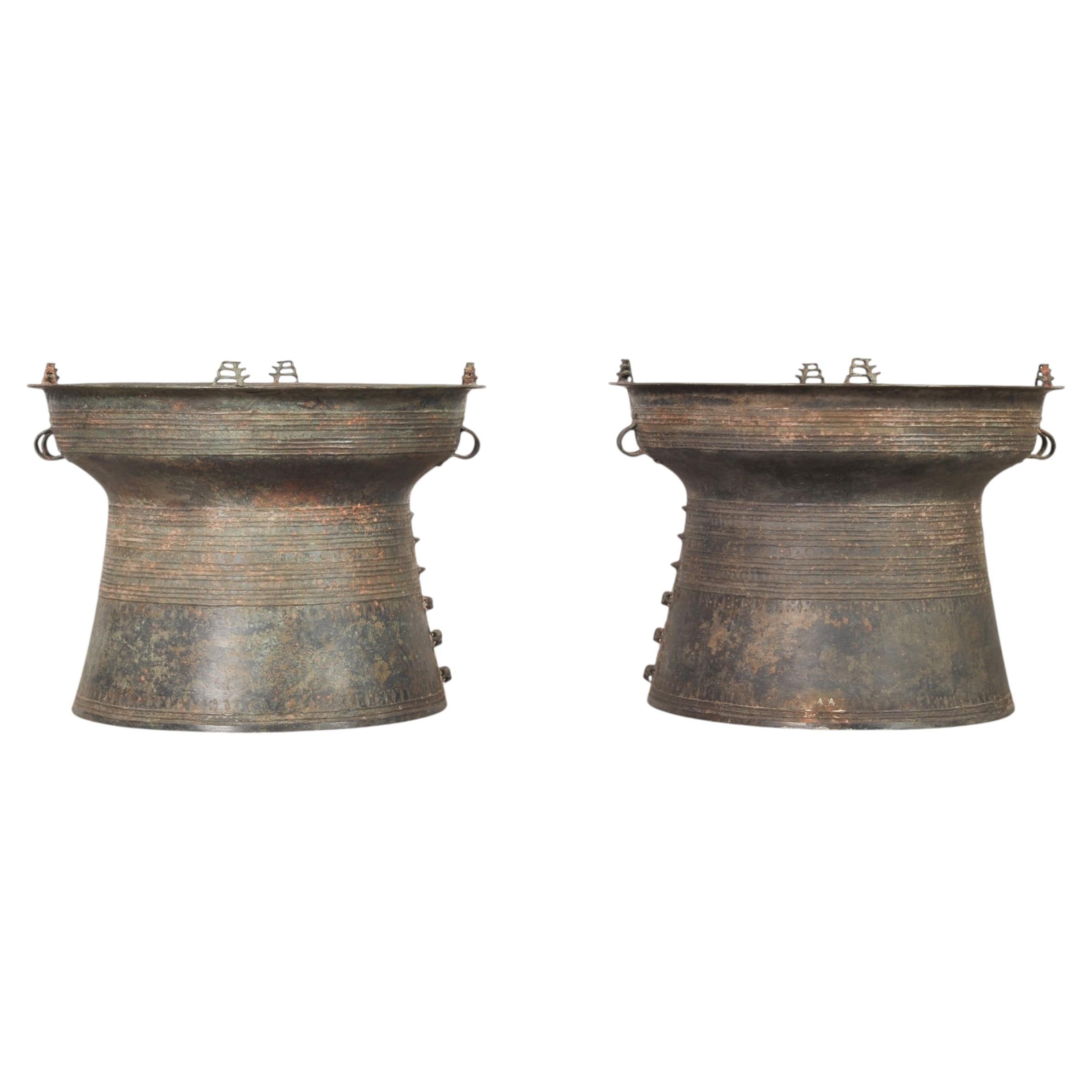 Pair of Southeast Asian Bronze Rain Drums or Drinks Tables