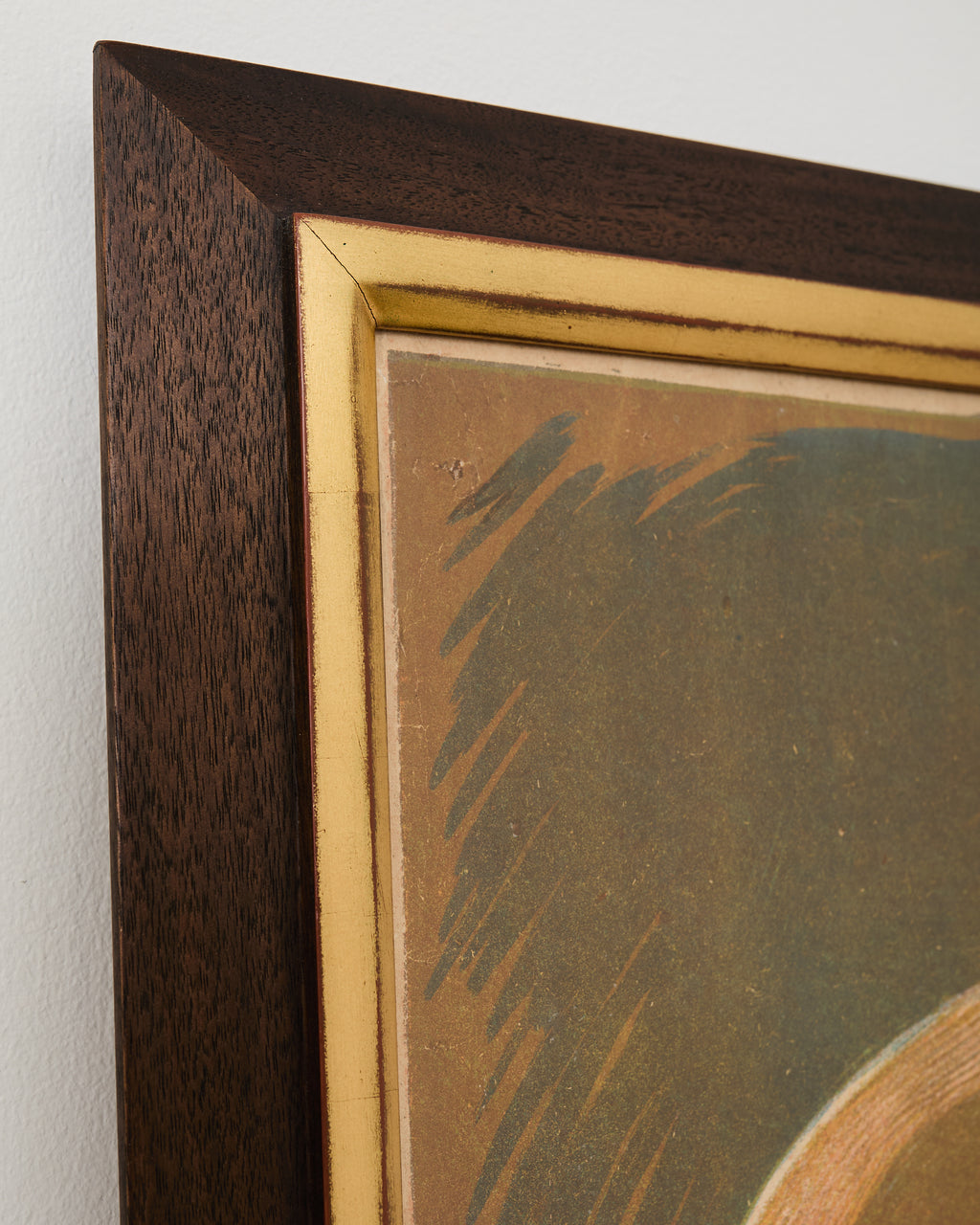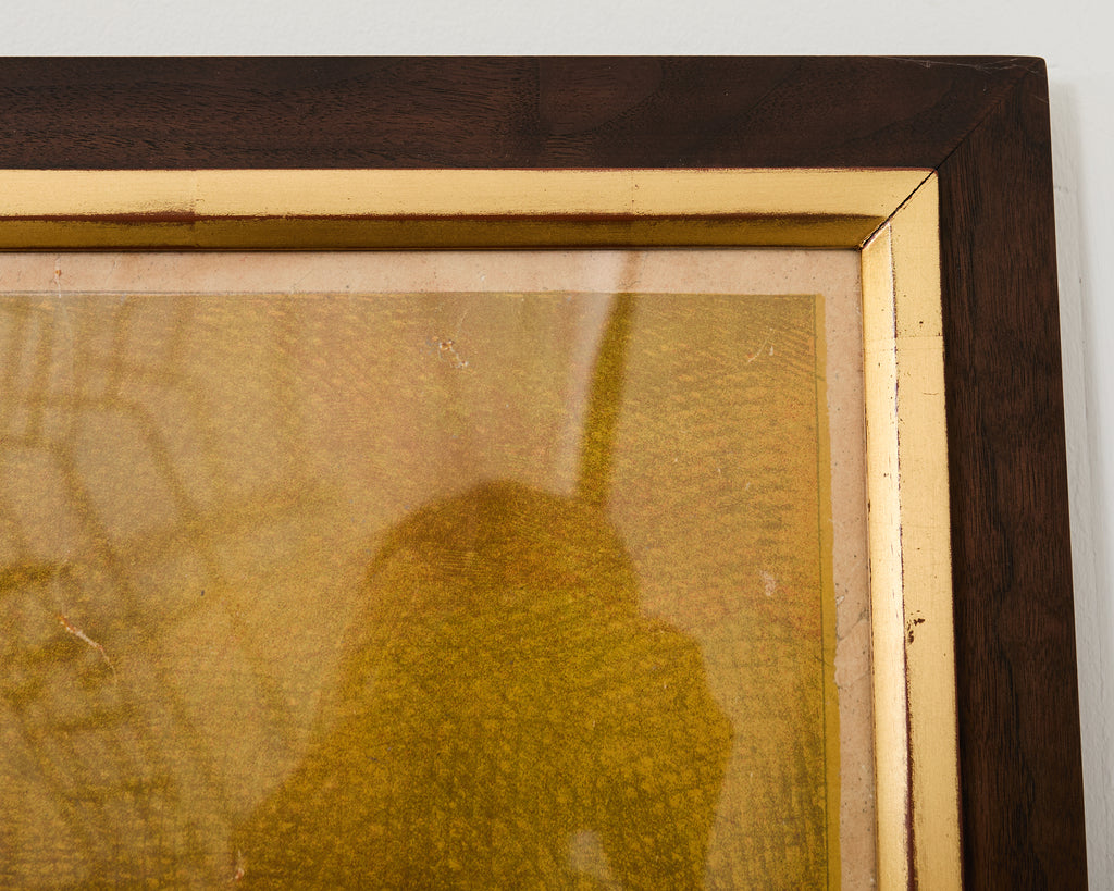 Condition: Good, wear consistent with age and use. Beautifully framed with solid joinery and construction. Poster has an aged patina with age appropriate wear. Minor tears, losses, and repairs mostly to edges. Slight fading and darkening as seen in photos.