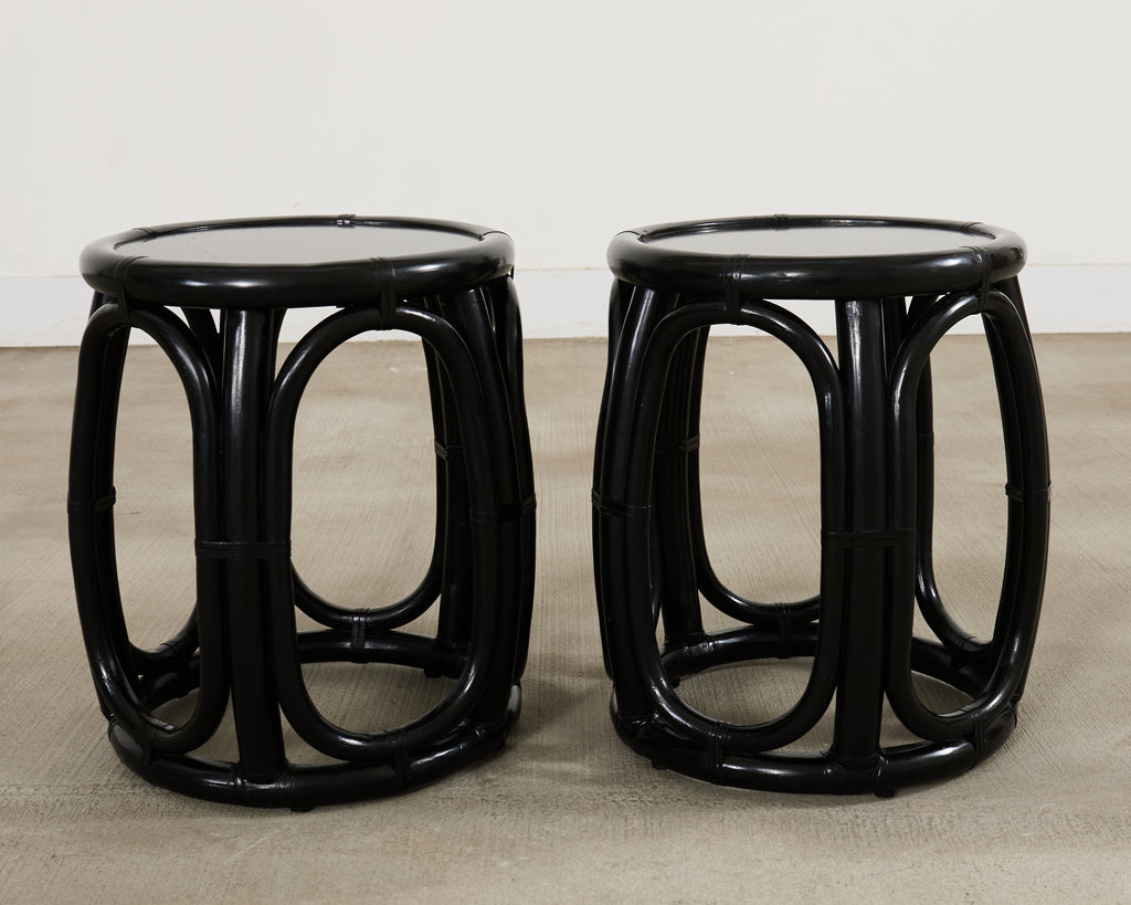 Pair McGuire Lacquered Rattan Taborette Drum Drink Tables