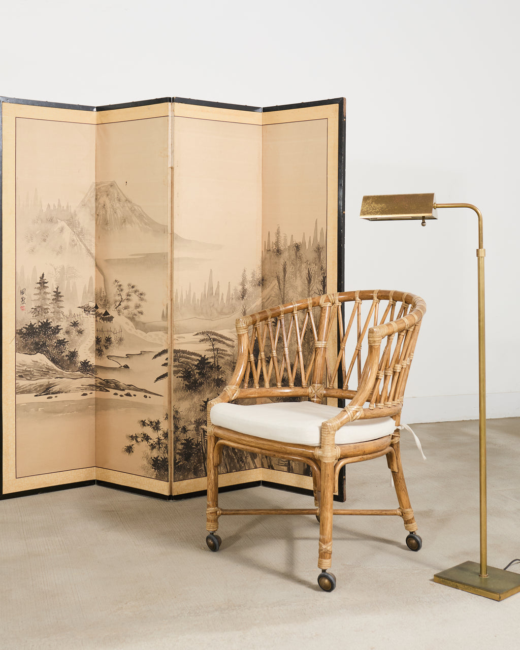 Mid-Century Adjustable Patinated Brass Pharmacy Floor Lamp