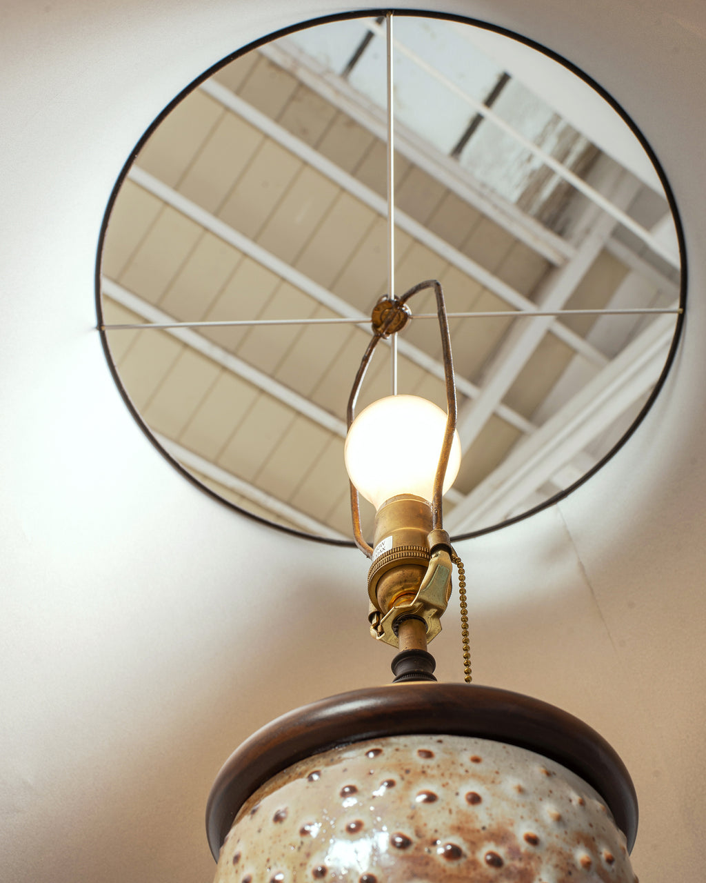 Condition: Good, wear consistent with age and use. Beautifully crafted with solid joinery and construction. Very good, well preserved condition as seen in photos. Includes shade. Natural imperfections to finish as expected.