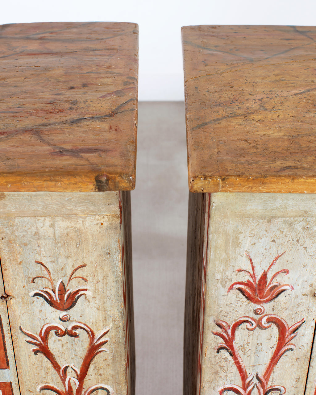 Pair of Italian Venetian Faux Marble Top Painted Cabinets