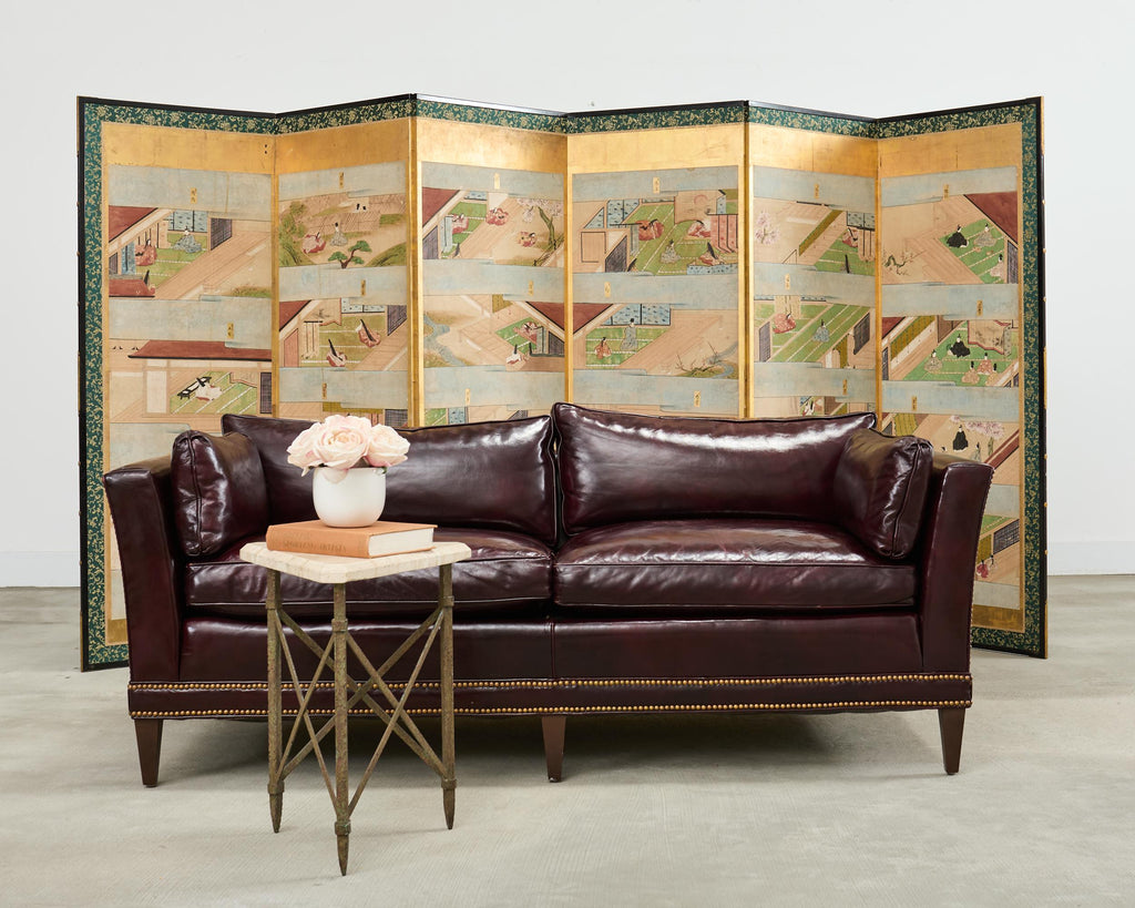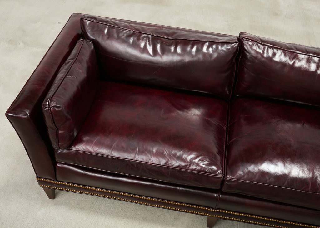 English Regency Style Waxed Cordovan Leather Case Sofa