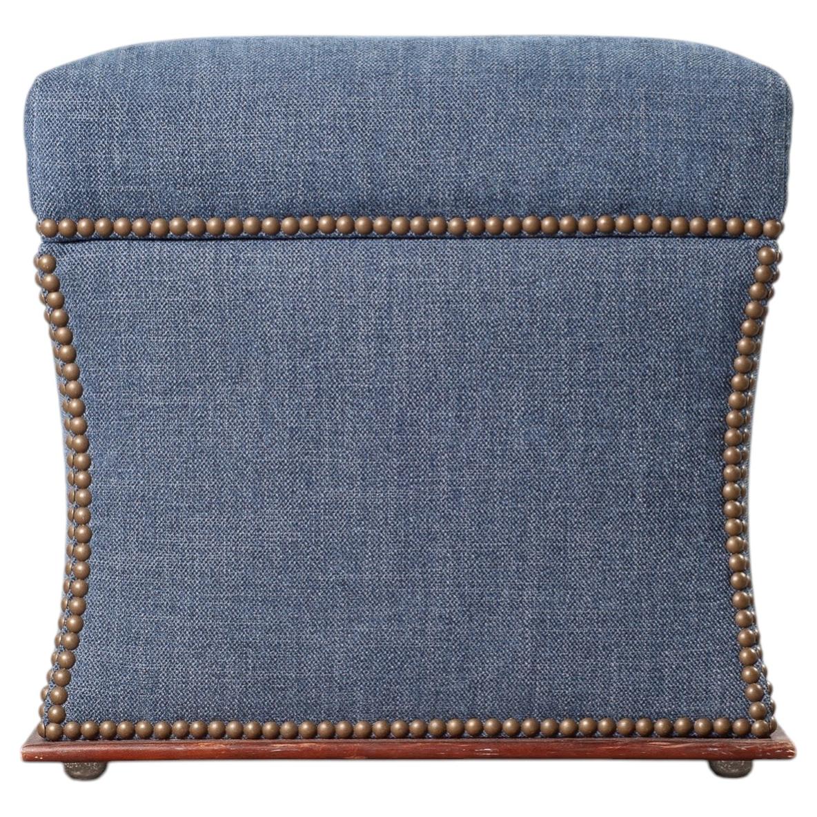 Ralph Lauren 'Florence' Storage Ottoman in Damask Blue Linen