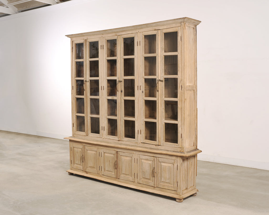 Country French Bleached Oak Bookcase Bibliotheque Cabinet 8 Ft