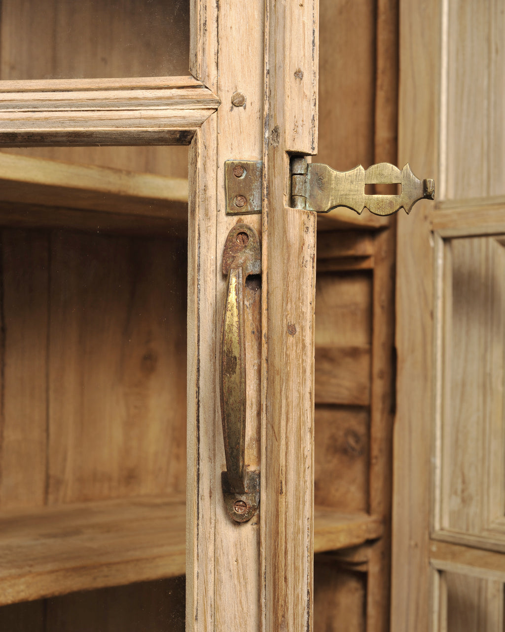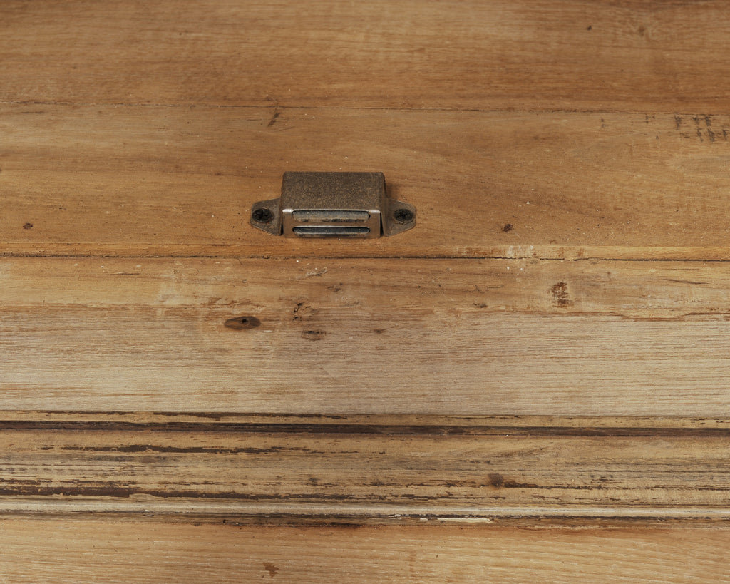 Condition: Good, minor wear consistent with age and use. Beautifully crafted with an aged, distressed patina on the finish as seen in photos. Patinated and oxidized brass hardware. Age appropriate wear with natural age cracks, chips, marks, losses, scuffs and fading to oak as expected.