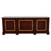 Imposing grand 19th century mahogany sideboard buffet cabinet crafted in the neoclassical Louis Philippe taste. The cabinet features a thick, solid mahogany case showcasing radiant mahogany woodgrains with a rich, dark polished finish. The case is topped with a massive 1.25 inch thick slab of marble with an ogee top edge in variegated grey and white tones. The case is fronted by three large doors with polished bronze borders having a rippled design. Each door has a patinated brass escutcheon and lockplates with keys. The case is very heavy and solid constructed from 1.5-2 inch thick slabs of wood. The massive cabinet is beautifully crafted with extraordinary craftsmanship on a monumental scale measuring over 8 feet long. From an estate in the Napa Valley, CA. The cabinet could also serve as a credenza.