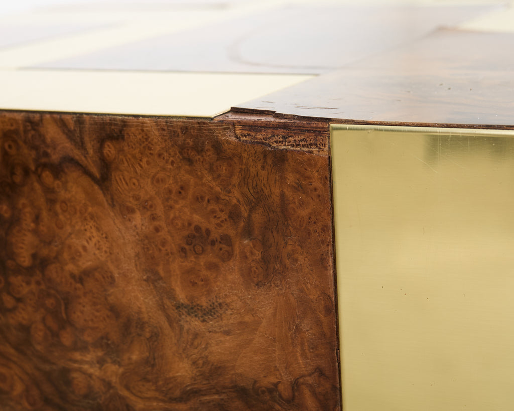 Pair of Paul Evans Signed Cityscape Burl Walnut Brass Cabinets