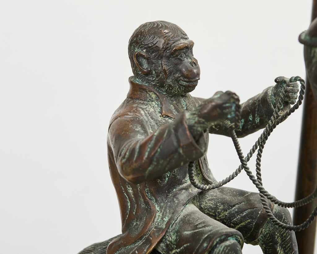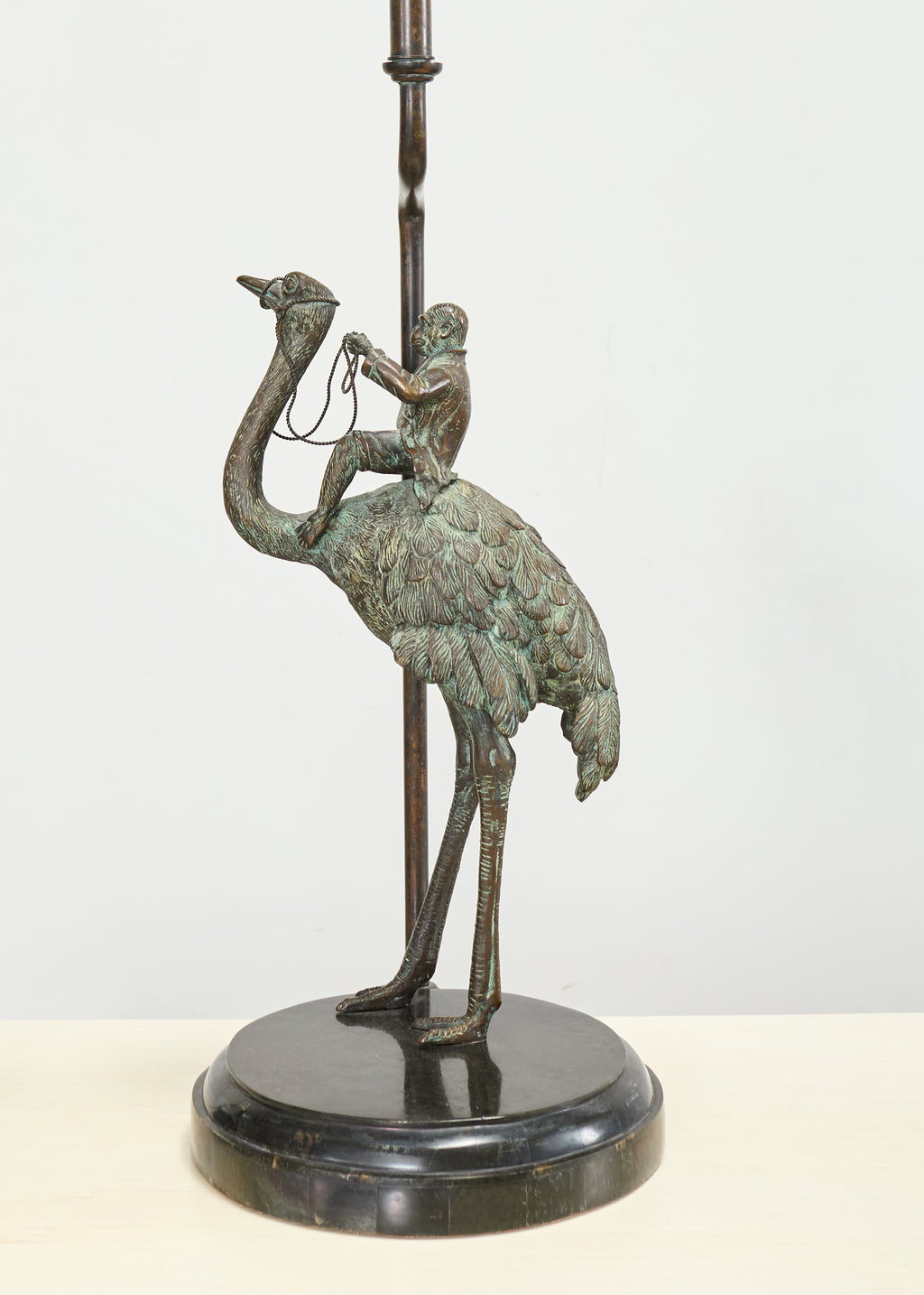 Pair of Maitland-Smith Bronze Monkey Ostrich Table Lamps