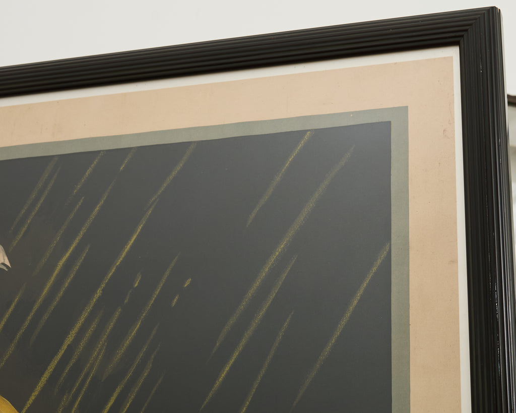 Condition: Good, wear consistent with age and use. Very good, well-preserved condition as seen in photos. Age appropriate wear and fading with very minor foxing and scuffs on edge of art as expected. Minor scuffs on frame.