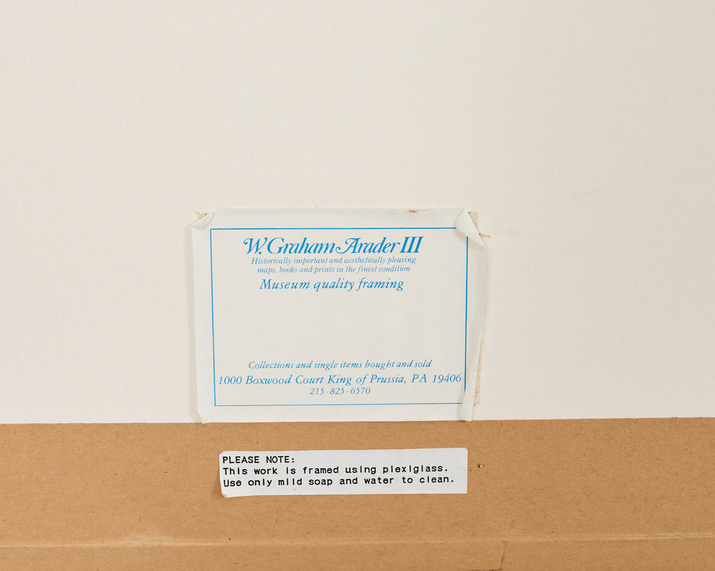 Condition: Good, wear consistent with age and use. Age appropriate wear and fading as seen in photos. Minor foxing, toning and stains as expected. Gilt frame has a distressed patina.