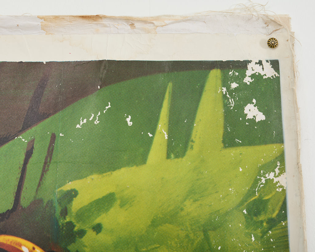 Giant Disney movie poster printed on linen canvas measuring 7 ft. square. Walt Disney production distributed by Buena Vista with stamp, circa 1960. Amazing vivid color given age and use. Printed on thick linen canvas with minor small losses as seen in photos. Unframed from an estate in Hollywood, CA. Very good, well preserved original condition with minor wear. Rare size and scale. **Must ship white glove due to size, cannot be folded**