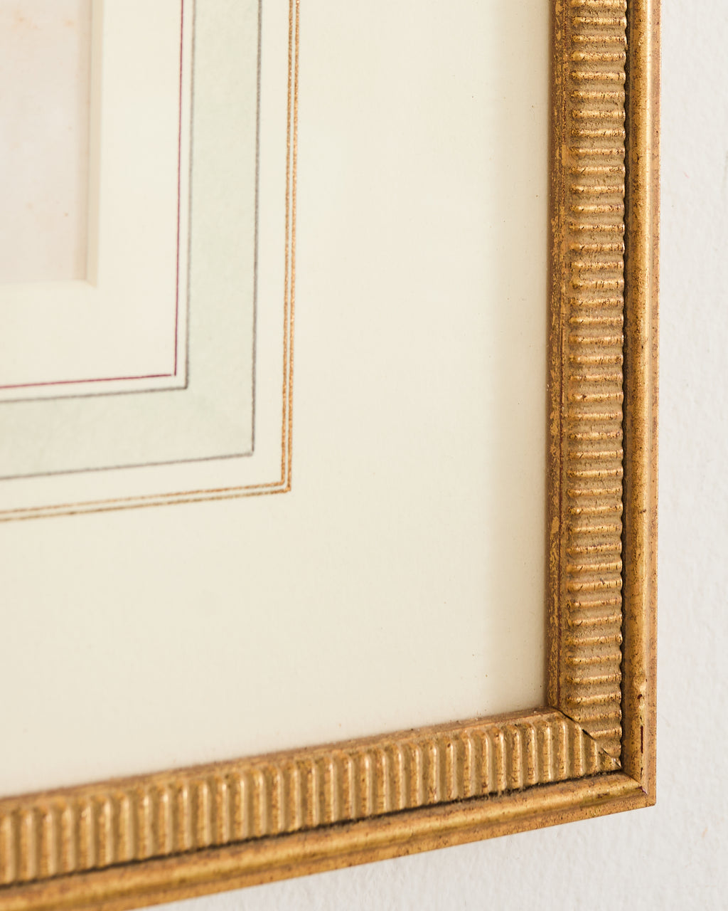 Condition: Good, wear consistent with age and use. Beautifully framed with intentionally aged gilt finish on the frames. Age appropriate wear on prints with fading, toning, light foxing, and creases to paper as seen in photos.