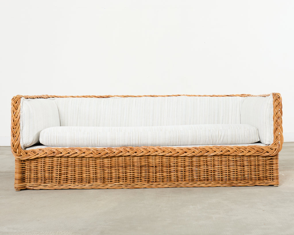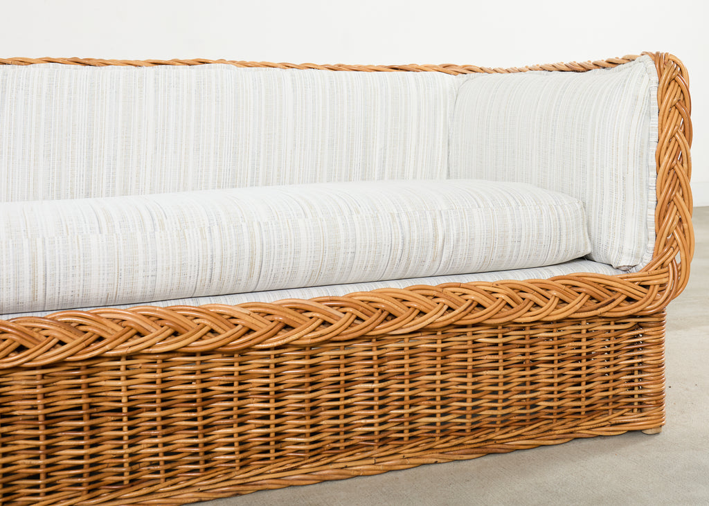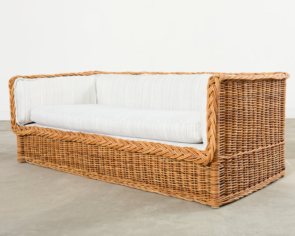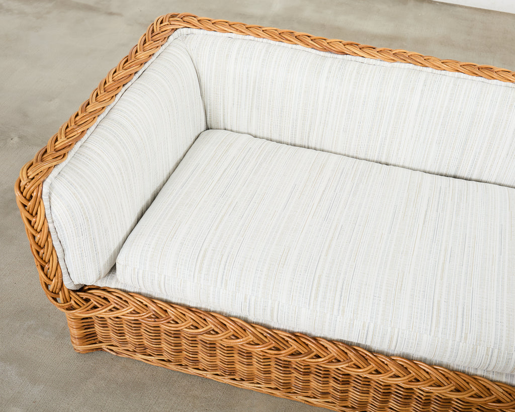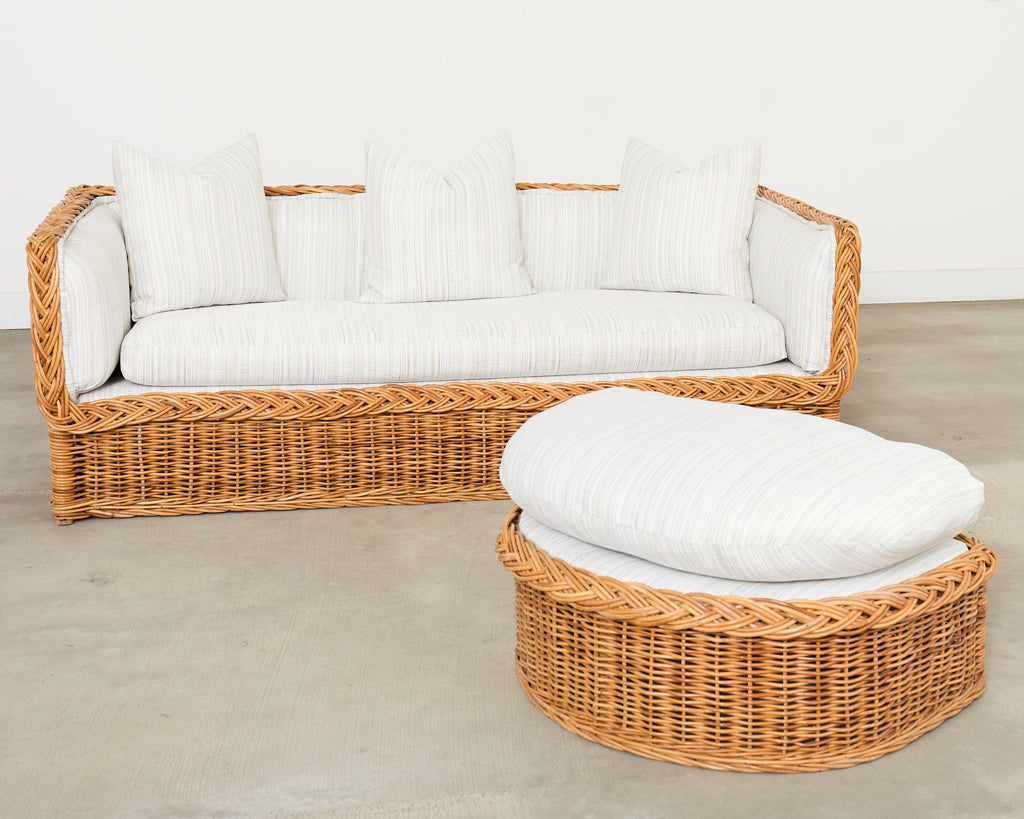 Michael Taylor Style Italian Wicker Works Rattan Sofa + Ottoman