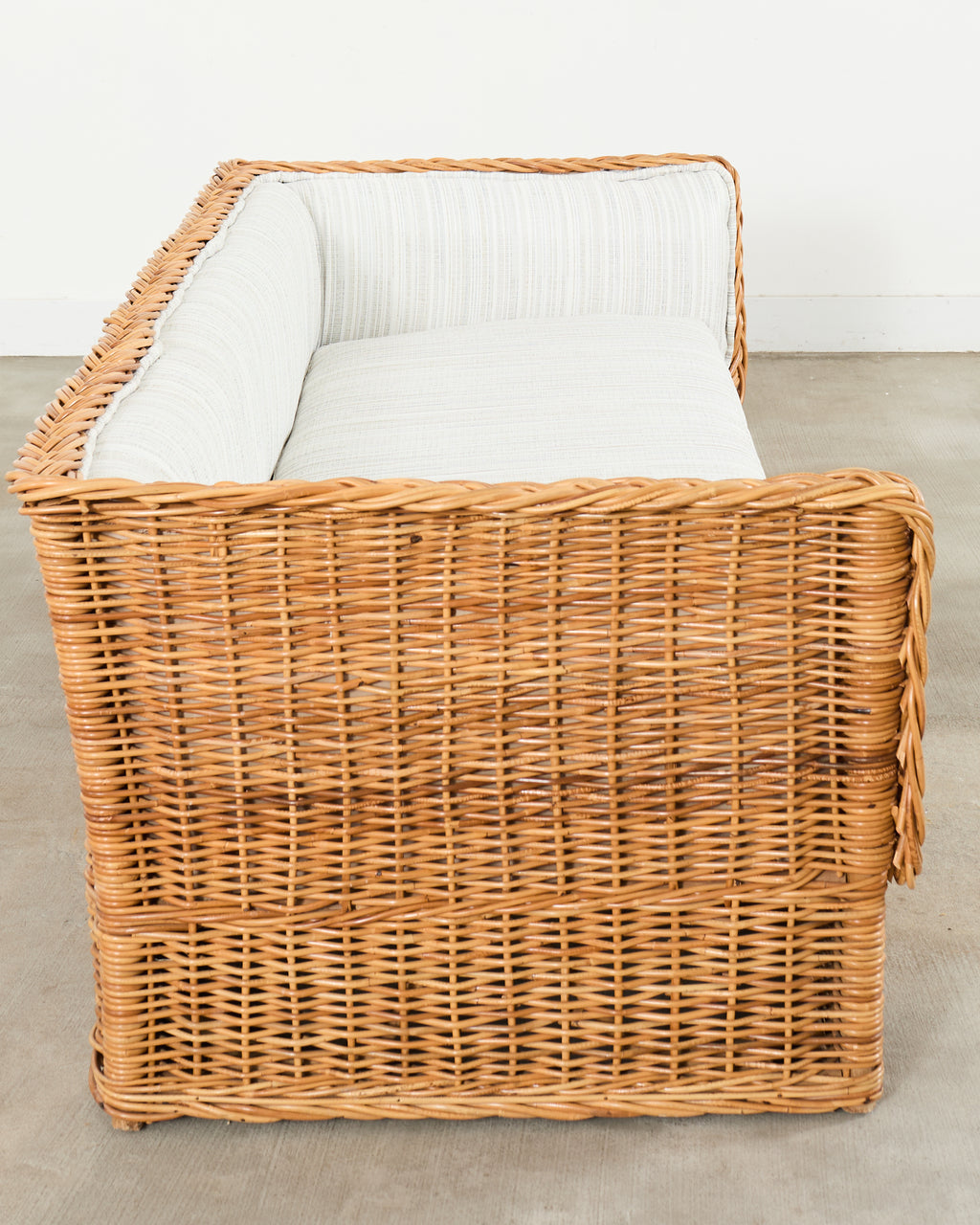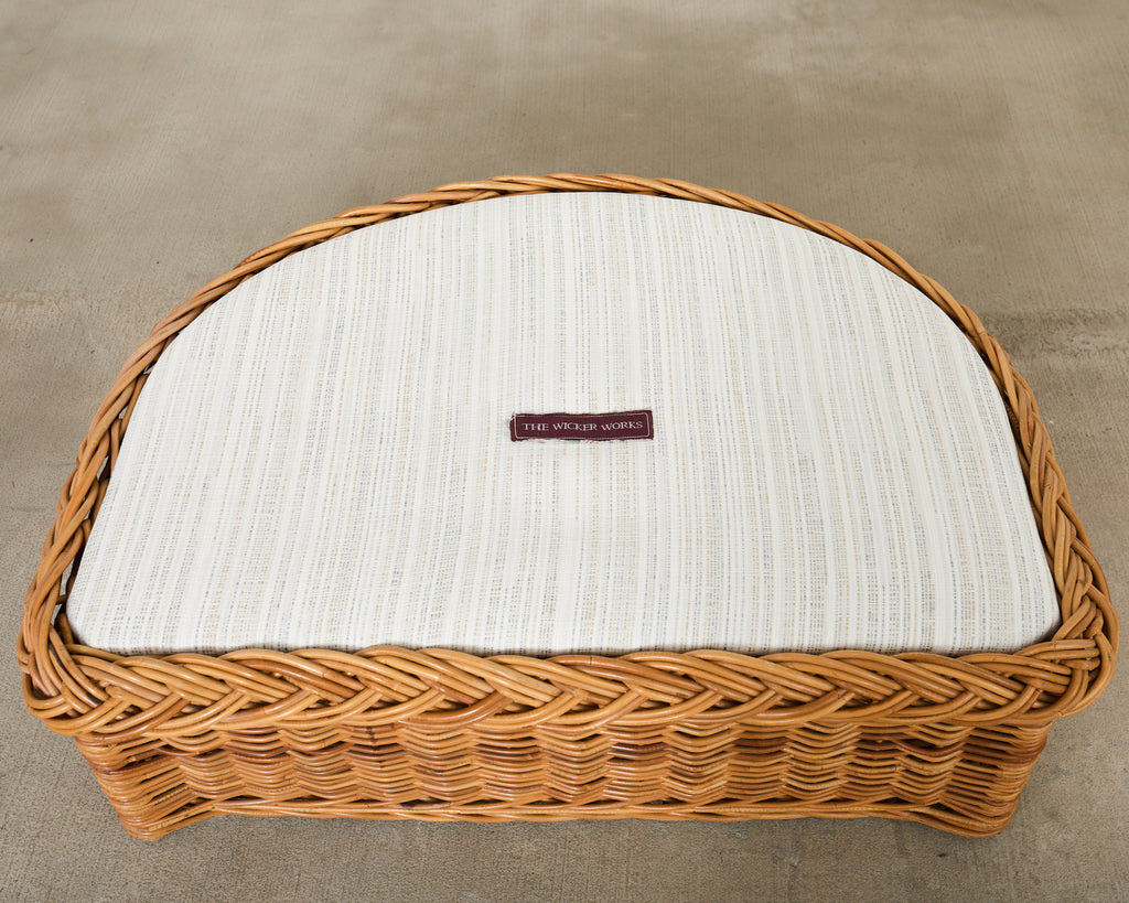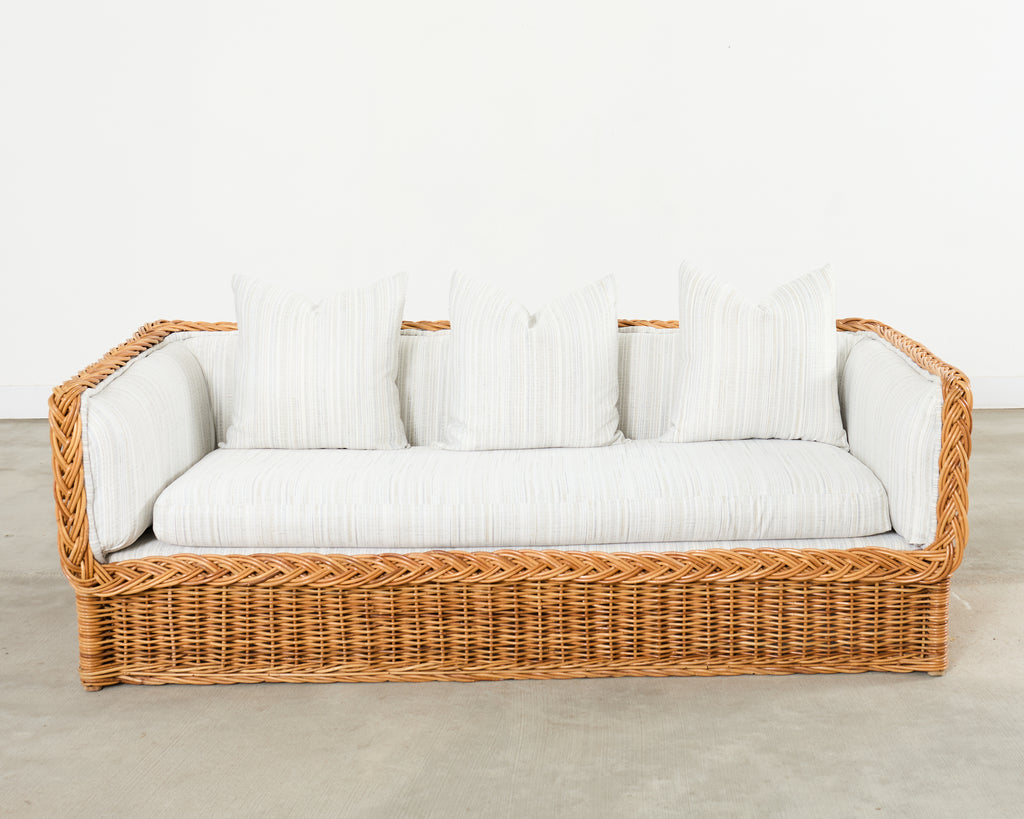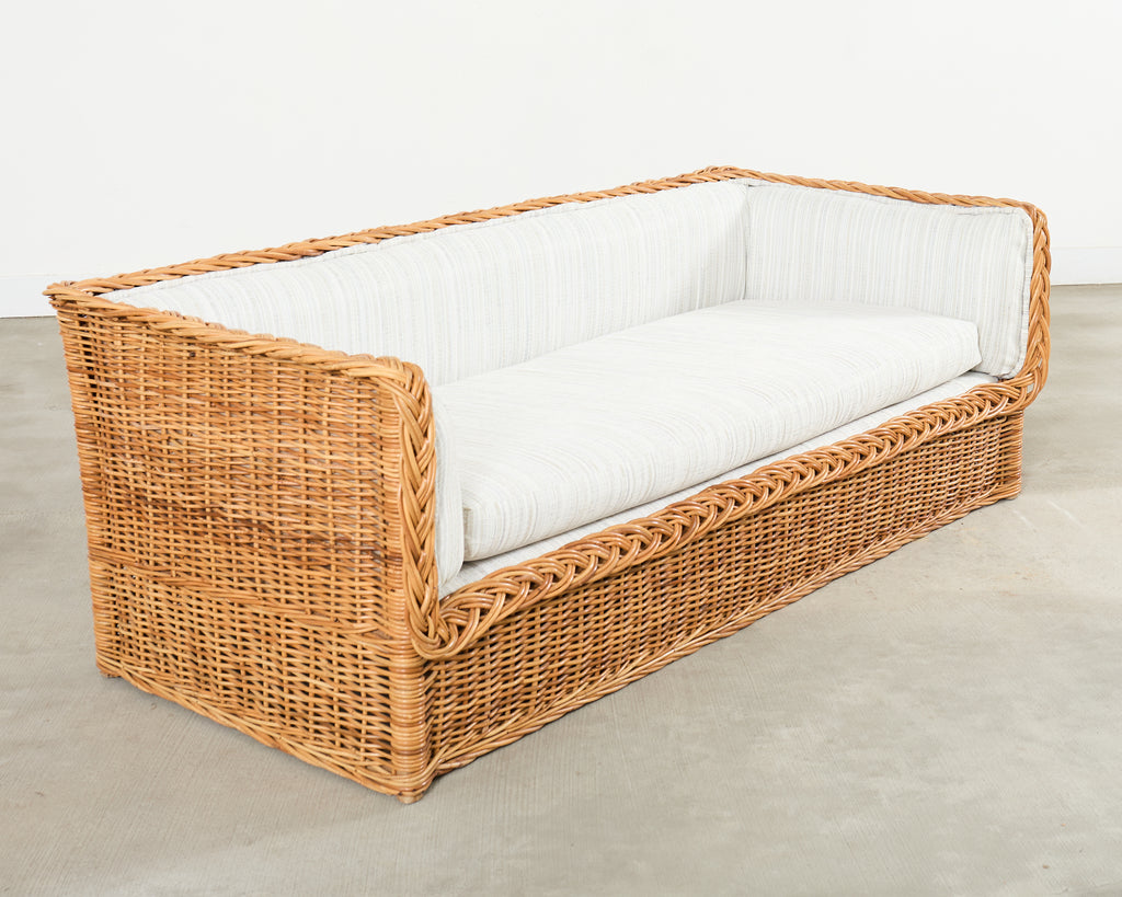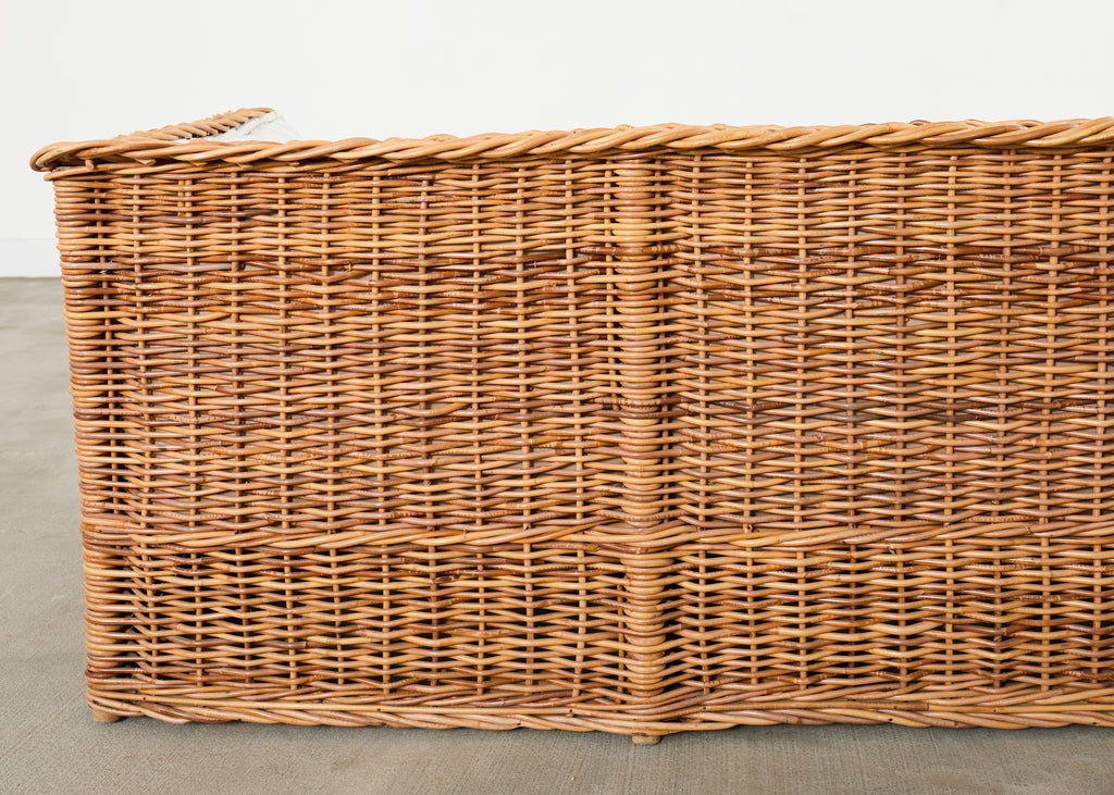 Michael Taylor Style Italian Wicker Works Rattan Sofa + Ottoman