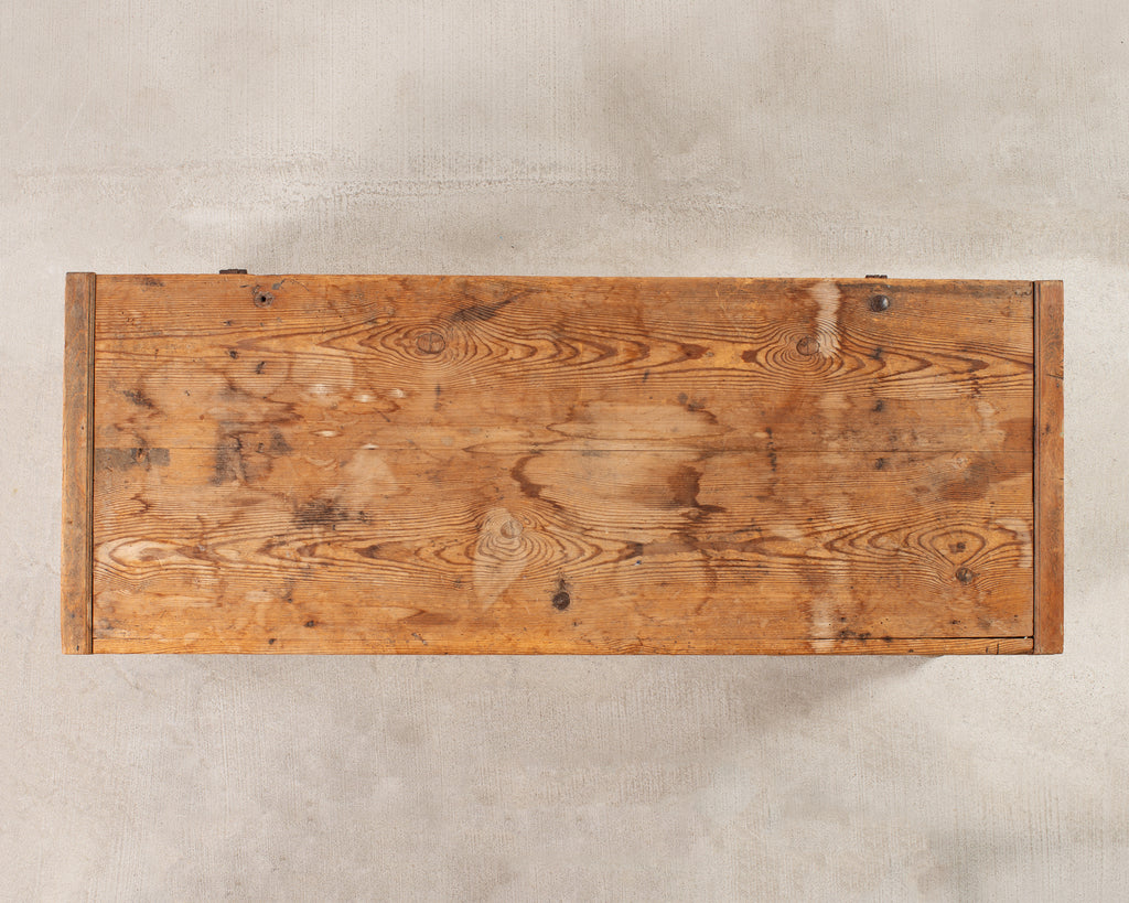 Condition: Distressed, wear consistent with age and use. Beautifully crafted with solid joinery and robust construction. Aged, distressed patina as seen in photos. Minor chips, scuffs, stains, natural age cracks, old repairs, and marks adding to the historic authenticity and character of the piece.