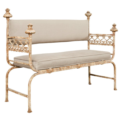 Condition: Good, minor wear consistent with age and use. Reupholstered. Newly upholstered with age appropriate wear. Old repairs and hand-carved finish. Stool is not even on bottom but difficult to notice, losses to finish as seen in photos.