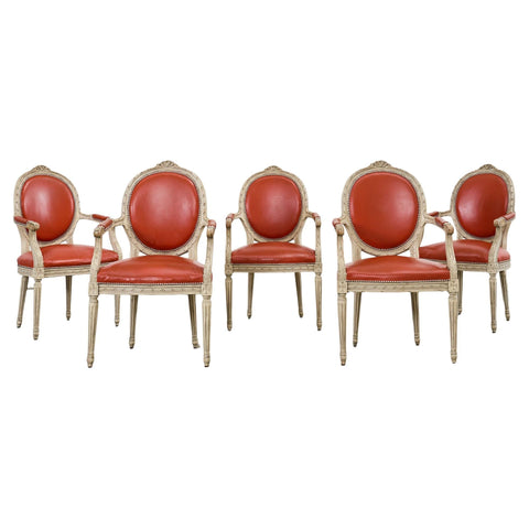 Set of Six Napoleon III Style Faux Rope Cerused Dining Chairs
